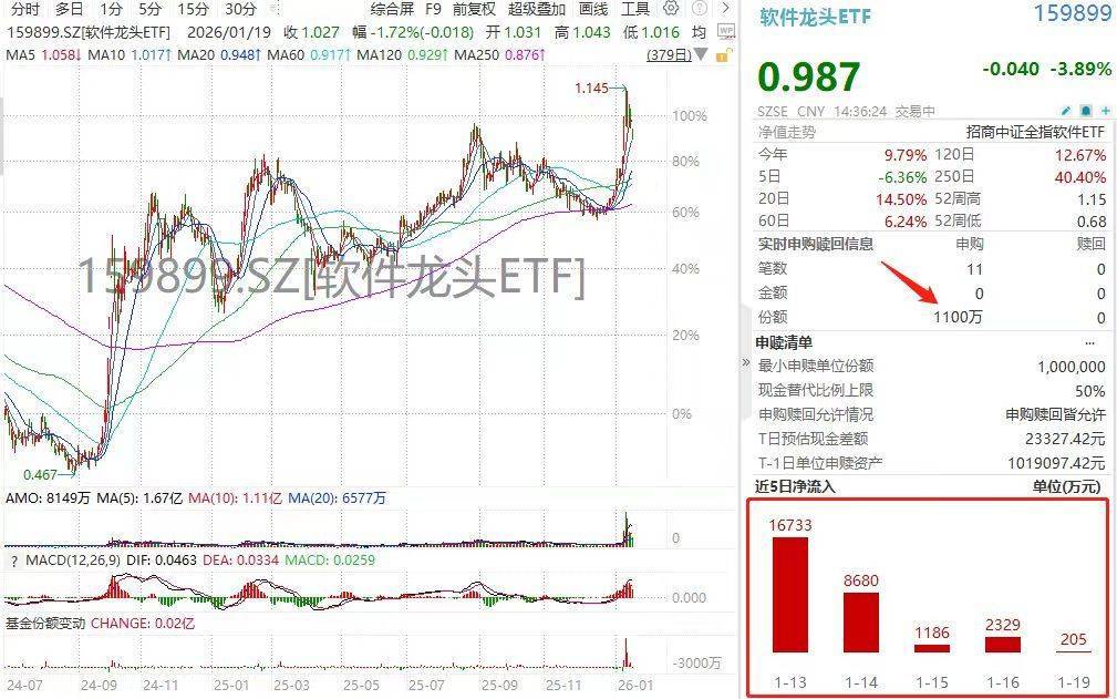 1月20日网上配资账号,高成长板块熄火,资金低位布局意图明显。数据显示,截至14时31分,软件龙头ETF(159899)跌3.70%,石基信息、四方精创、莱斯信息、中科星图、航天信息、神州信息、跌幅居前;资金热度不减,据Wind Level2实时行情,盘中连续第7日净流入!