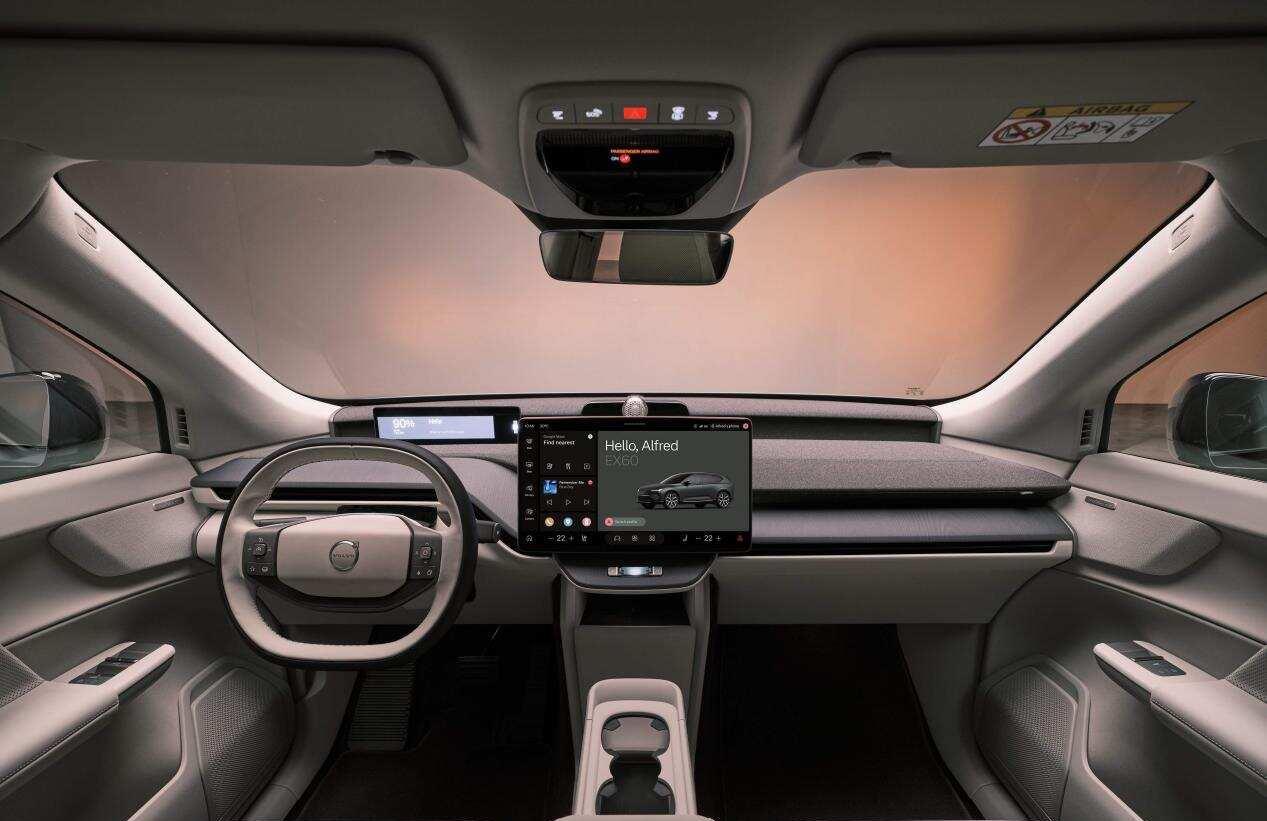 液晶仪表是窄条设计,远离方向盘,中控屏尺寸较大,悬浮样式,海外版本的界面只能说是比较简洁,美观度上一般,内置谷歌Gemini人工智能助手,智能化表现对比以往油车肯定有大幅提升,但要是跟国内的智能车机相比,估计还有优化空间。车里面配了28个扬声器的Bowers & Wilkins音响系统,含4个头枕音响,车顶配有全景天幕,从官图看,车门开启方式应该是电动按键式的。