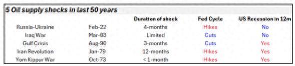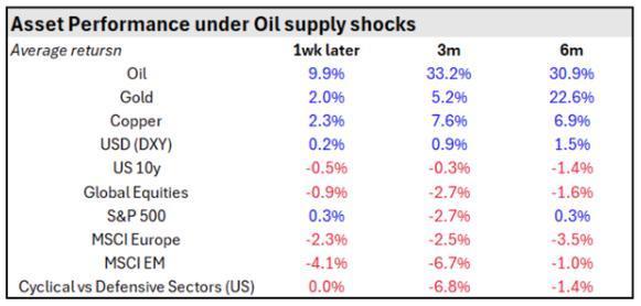 智通财经APP获悉,法国兴业银行策略师Manish Kabra表示,与伊朗冲突相关的新的地缘政治石油冲击可能会在短期内推高原油价格,但更广泛的经济影响可能比以往的事件更为可控。过去五十年间,世界经历了五次重大石油供应冲击,油价通常会在高位维持约三个月,之后长期影响取决于美联储的政策和全球经济增长周期。