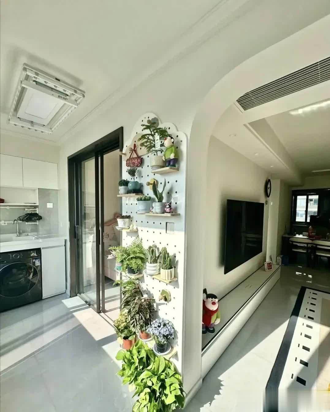 爱养绿植却没地方放?用洞洞板在墙上搭个“绿植墙”,既省空间又治愈。在阳台或客厅的白墙上装块洞洞板,用挂钩和隔板固定花盆,绿萝、多肉、小吊兰错落着挂,阳光照进来,整个家都显得生机勃勃。