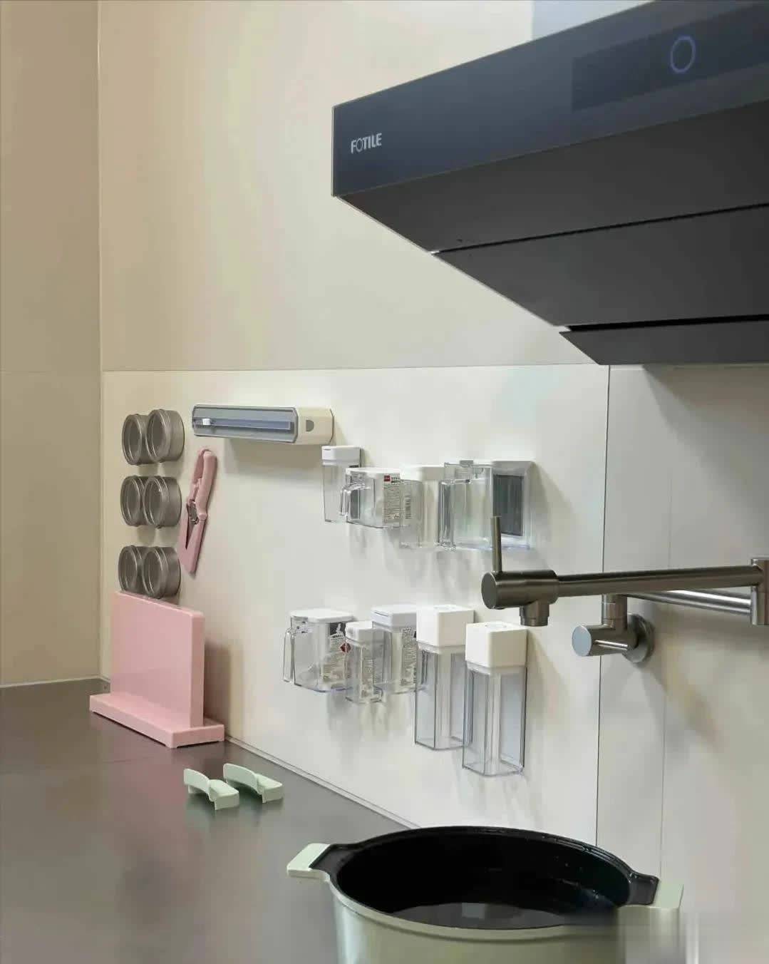 预算有限装不起整面珐琅板?哪怕只在灶台旁边贴一小块,也能解决大麻烦。珐琅板表面光滑,油污溅上去不用使劲擦,拿湿抹布一擦就干净;关键它能“磁吸”——挂个刀架、放个调料瓶,不用在台面上堆得乱七八糟。