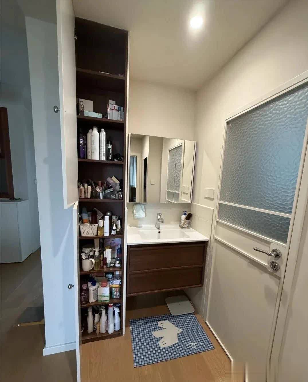 洗手台总是堆满护肤品、牙刷牙膏?别怪东西多,是你少了一个“高柜”。在卫生间干区装个顶天立地的高柜,能把所有洗漱用品“一网打尽”——上层放囤货的洗发水、沐浴露,中层放常用的护肤品,下层塞清洁工具,甚至能留出位置给扫地机器人“安家”。