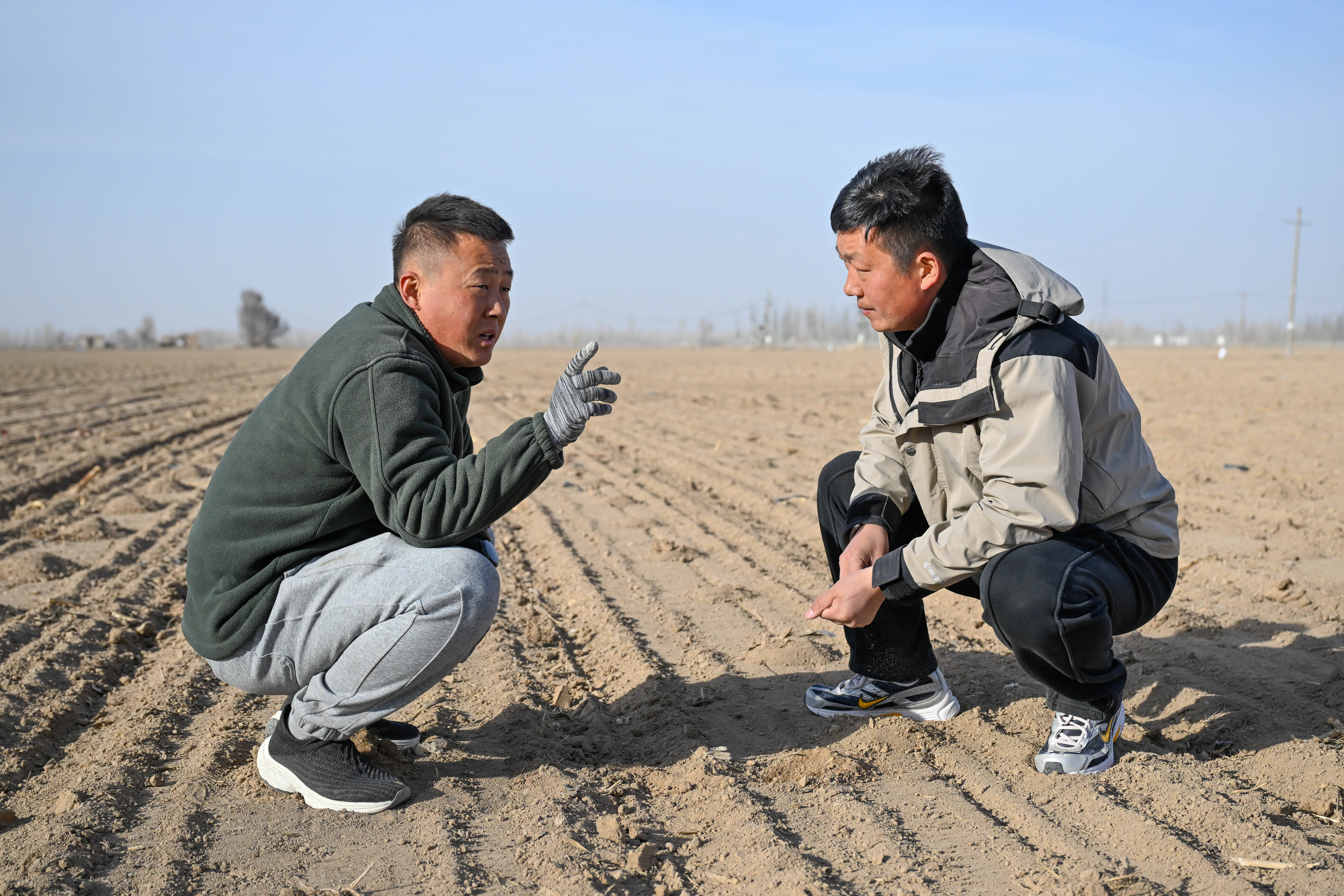 在新疆伊犁哈萨克自治州察布查尔锡伯自治县孙扎齐牛录镇,罗俊杰(右)和团队成员在地头确定播种方案(3月24日摄)。新华社记者 丁磊 摄从最初的200亩土地,发展到如今突破万亩,团队始终保留专属试验田,从品种筛选、肥料配比到田间化控管理,每一个环节都依托实测数据决策,杜绝盲目种植。